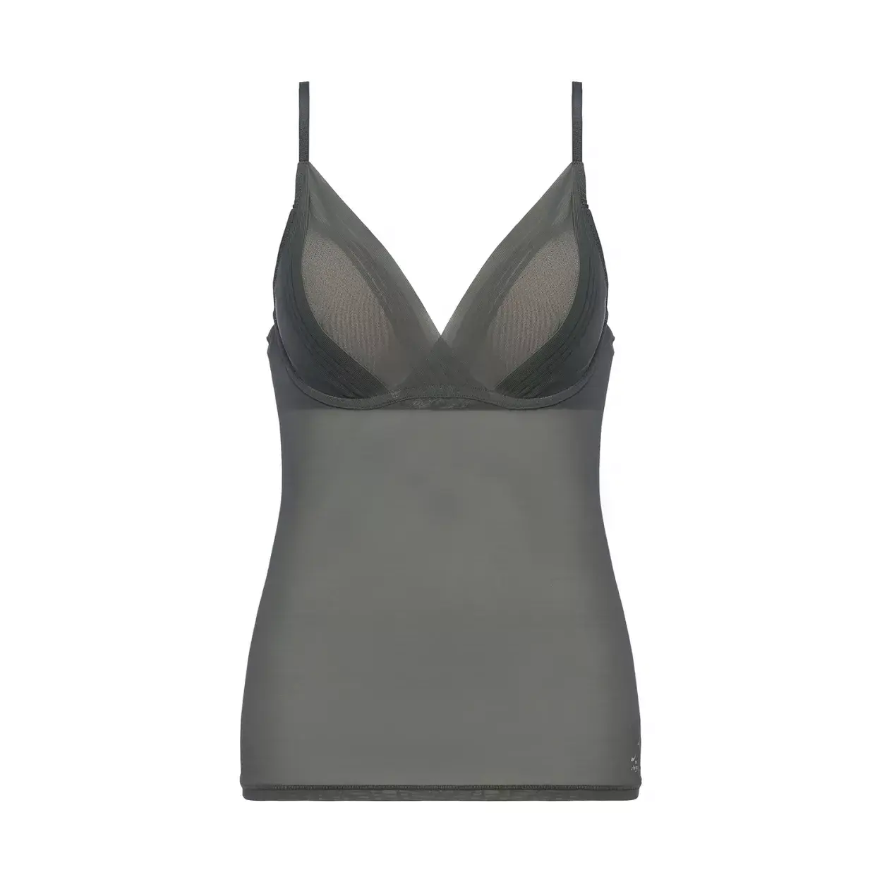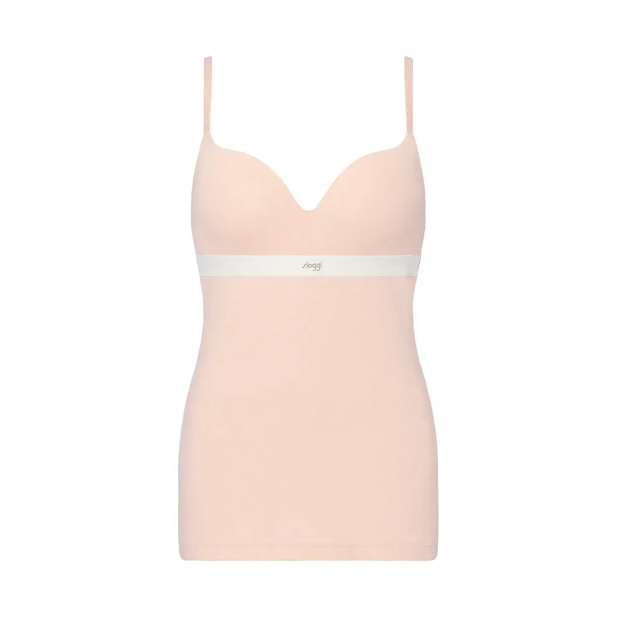 フラットな仕様の端にストライプデザインをあしらったメッシュ素材が、スマートな美しさを演出します。シルバーカラーのsloggiロゴがデザインポイントです。軽く、通気性の良いスペーサーカップを使用しています。自然な丸みのあるバストをメイクします。