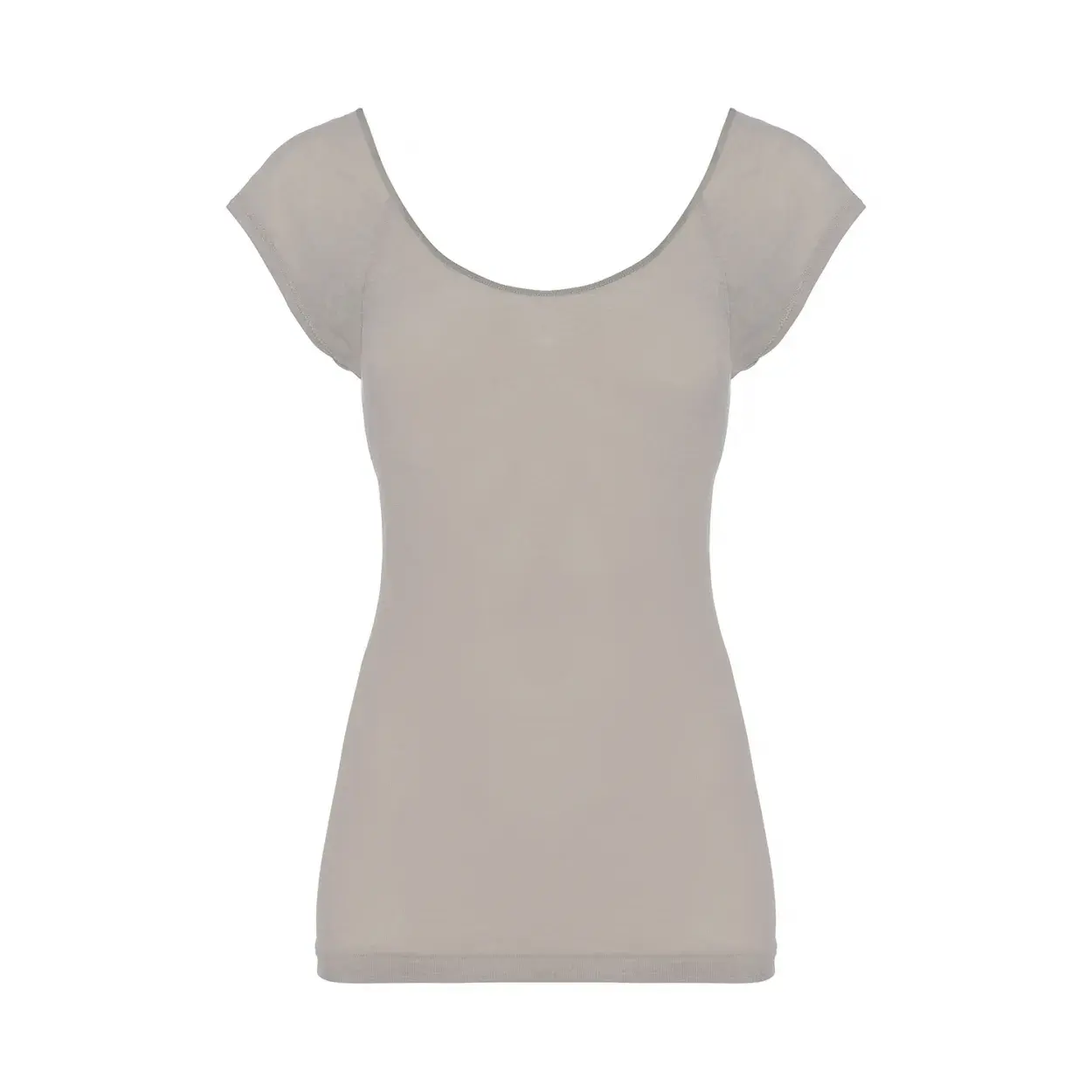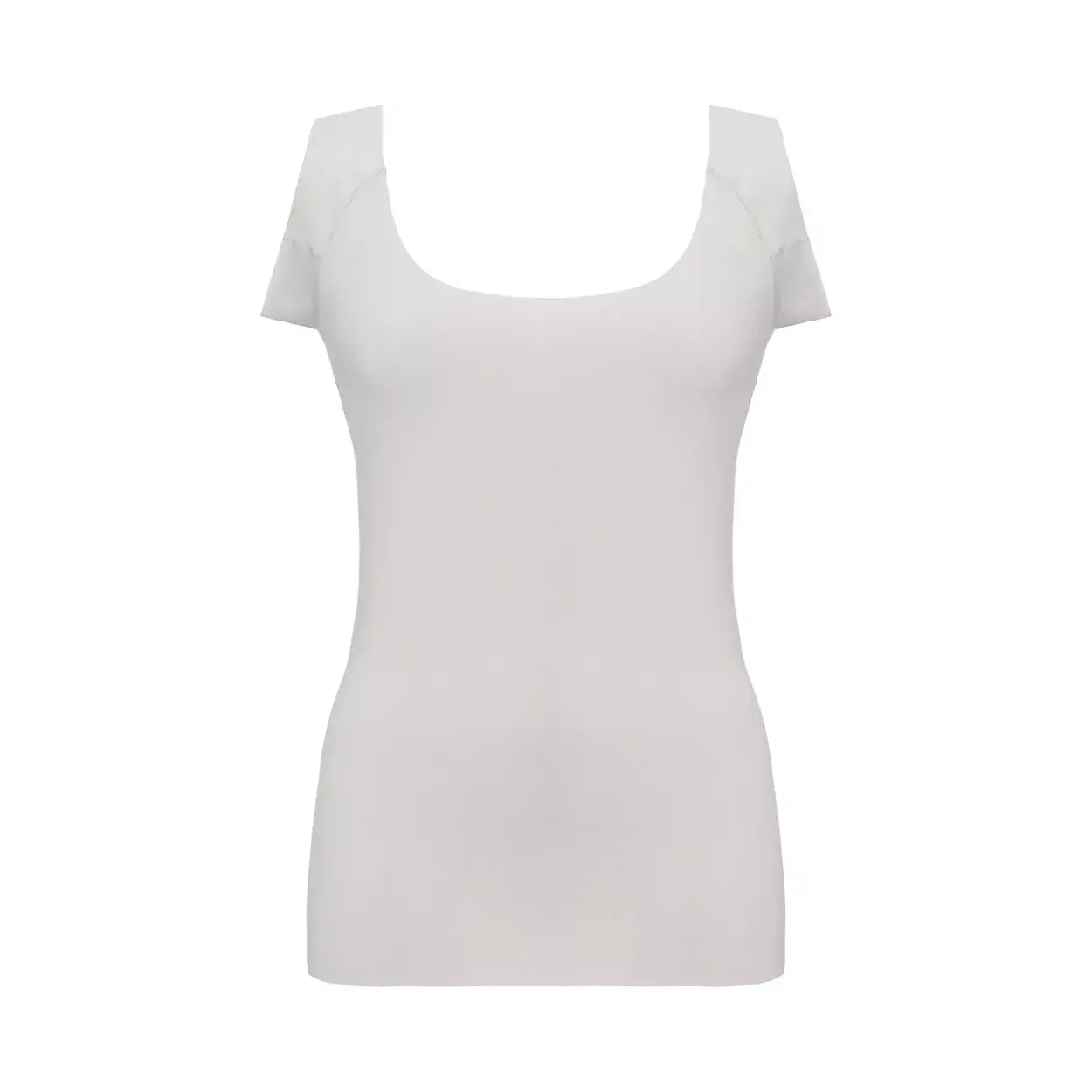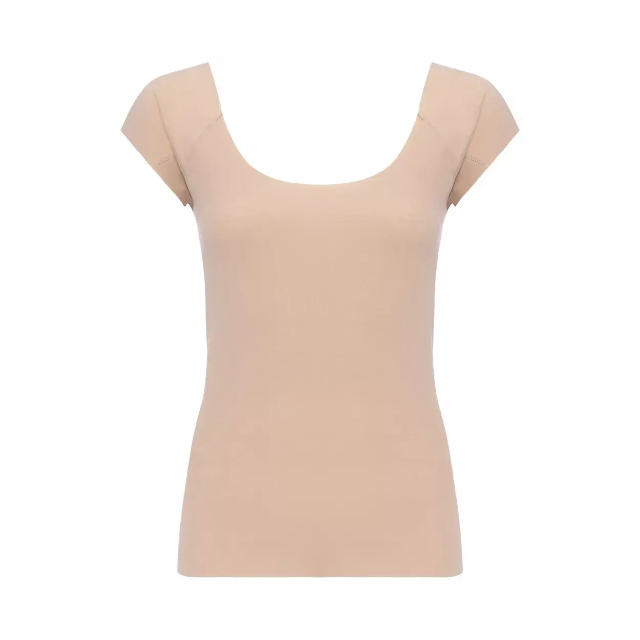 袖ありトップは、キャミソールやタンクトップではカバーしきれない肩のラインやワキ部分までやさしく包み込むデザインが特徴です。ワキ汗が気になる人や、トップスの袖口から下着が見えたくない人に特におすすめで、春夏はもちろん、秋冬のインナーとしても重宝します。