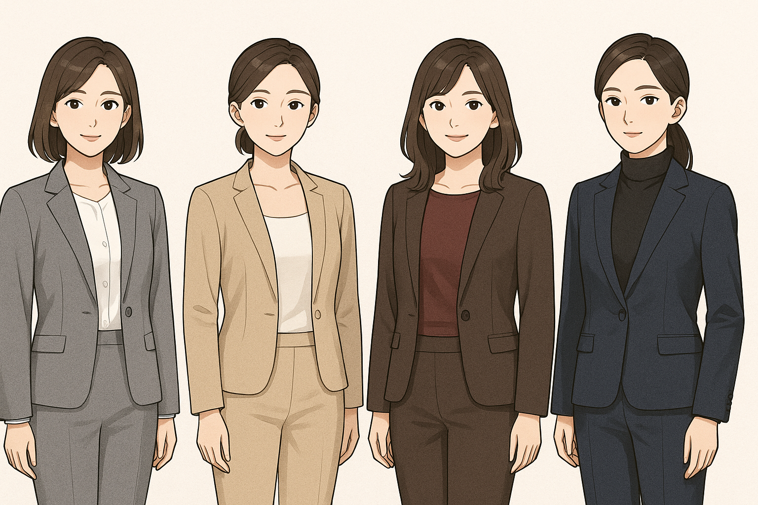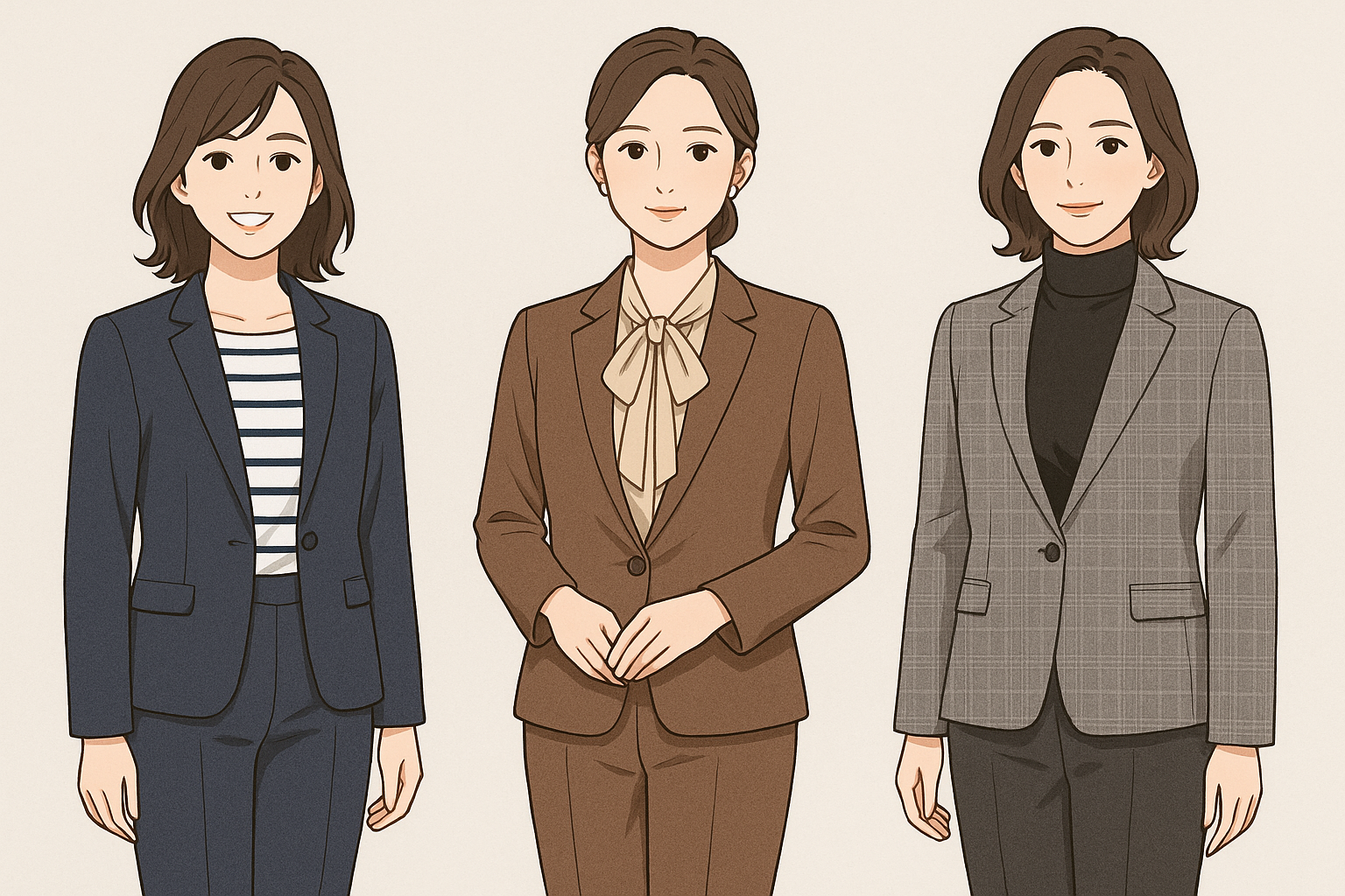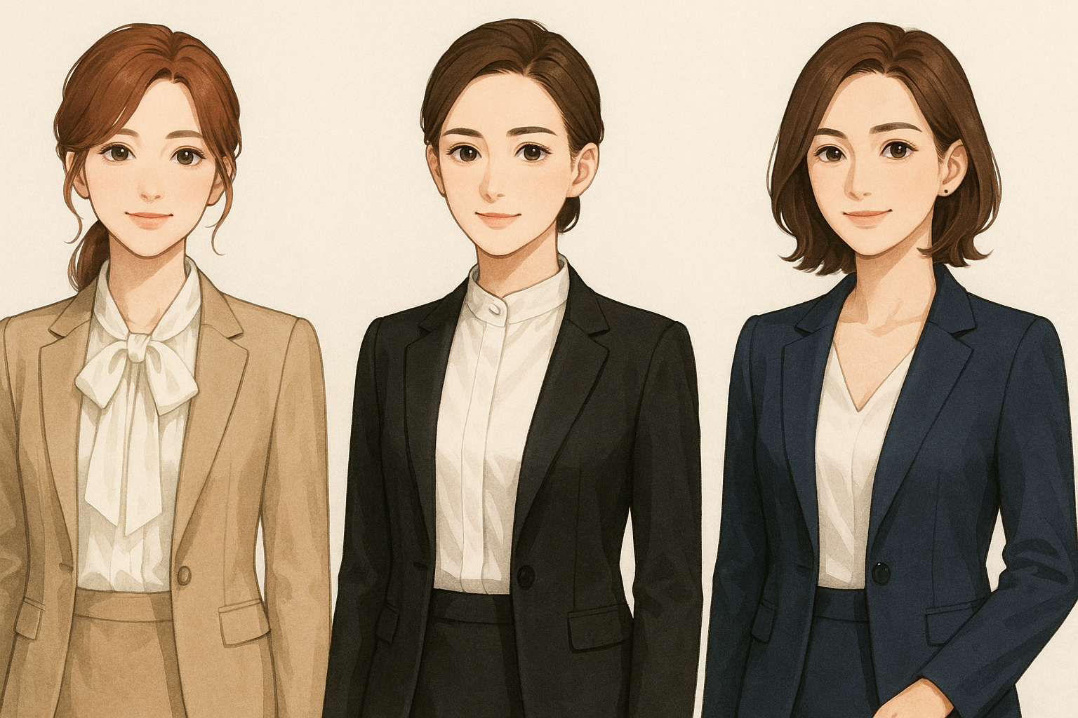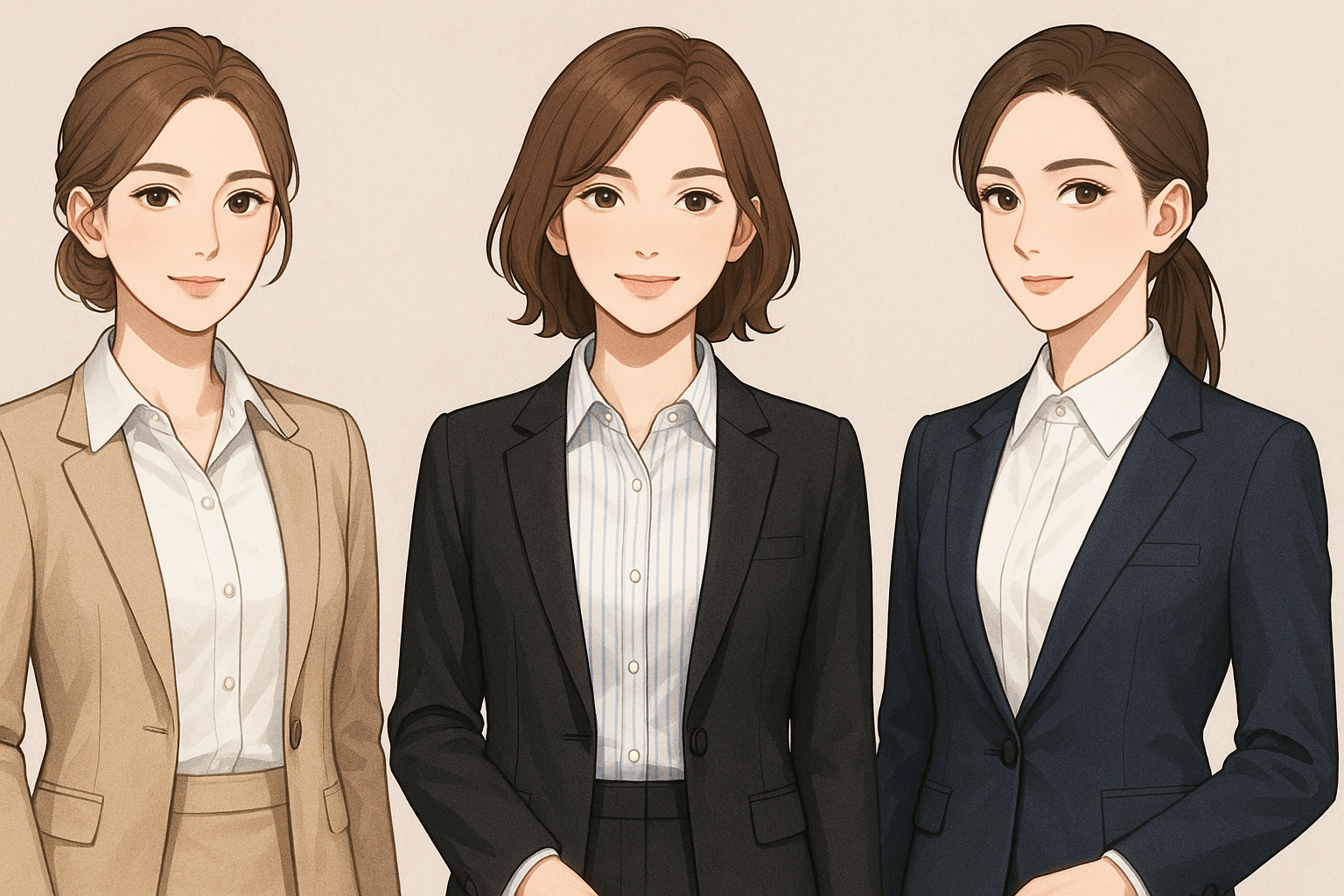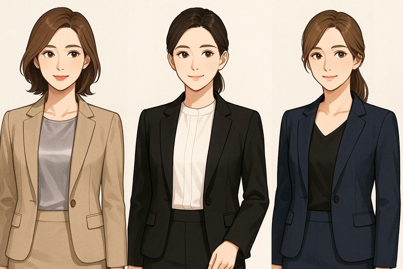 今回は、女性のスーツスタイルに欠かせないインナーの合わせ方について、基本的な役割から選び方のポイント、知っておきたいマナーまで幅広く解説しました。ブラウスなどの「見せるインナー」で自分らしさを表現しつつ、その下に着る「見せないインナー」で透けや汗ジミを防ぎましょう。