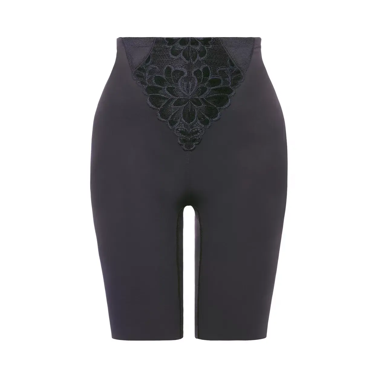 立体的なヒップラインを作る3Dカッティングが特徴のガードルです。綿混の葉柄ジャカードの身生地がボトムラインをすっきりサポートします。フロント裏打はしっかりと伸びを止める素材で横伸びをおさえ、サポートします。脚口に近い部分の生地のパワーを弱めているので、くいこみにくく、圧迫感を軽減します。