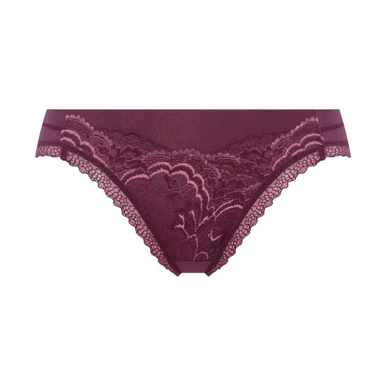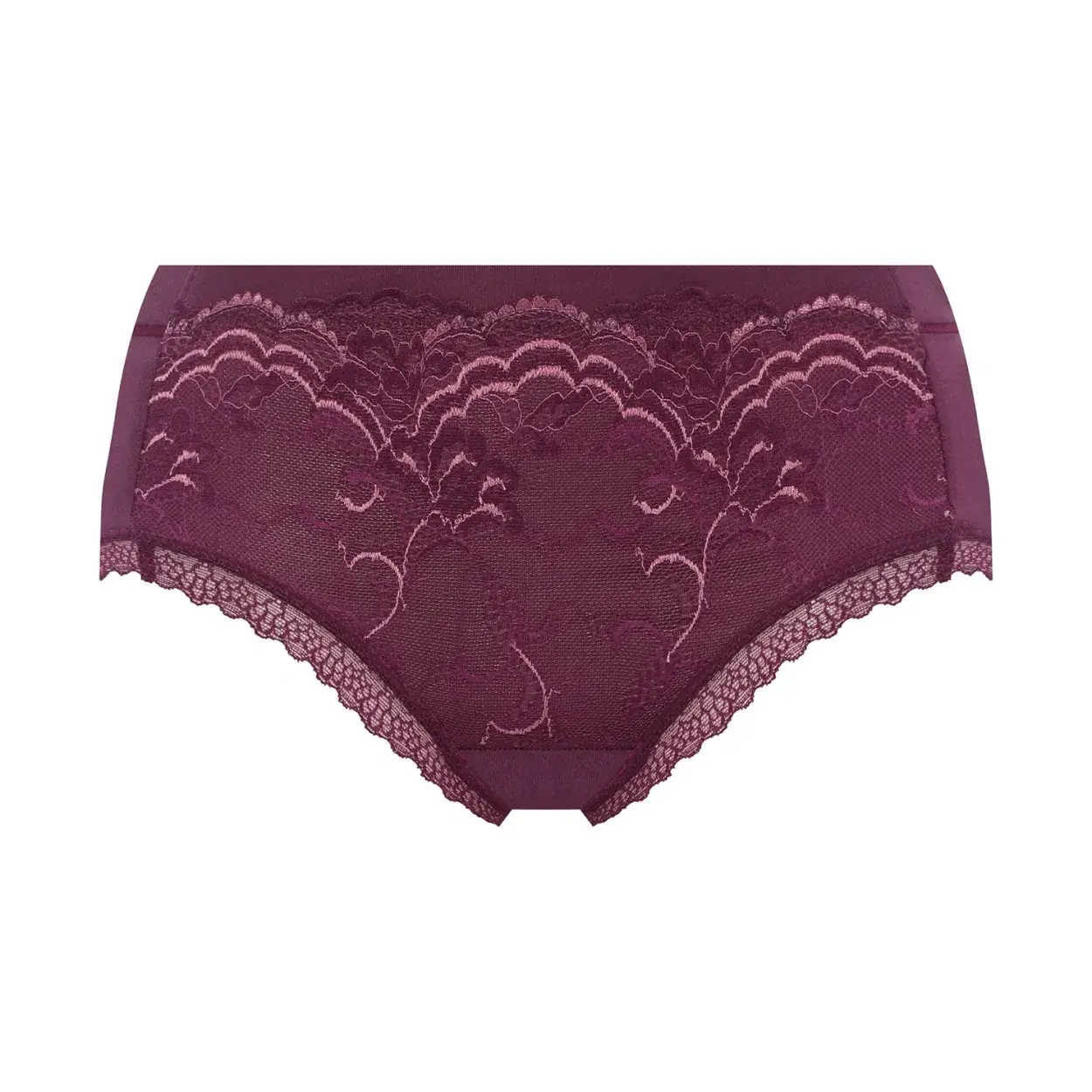 伸縮性のあるソフトな風合いの身生地を使用しているので肌触りが柔らかいです。フロント脚口がハイレグにカットされているので、鼠径部の圧迫が少なく、脚のラインがきれいに見えます。脚口にストレッチレースを使用しているのでフィット感があり、アウターにひびきにくいです。