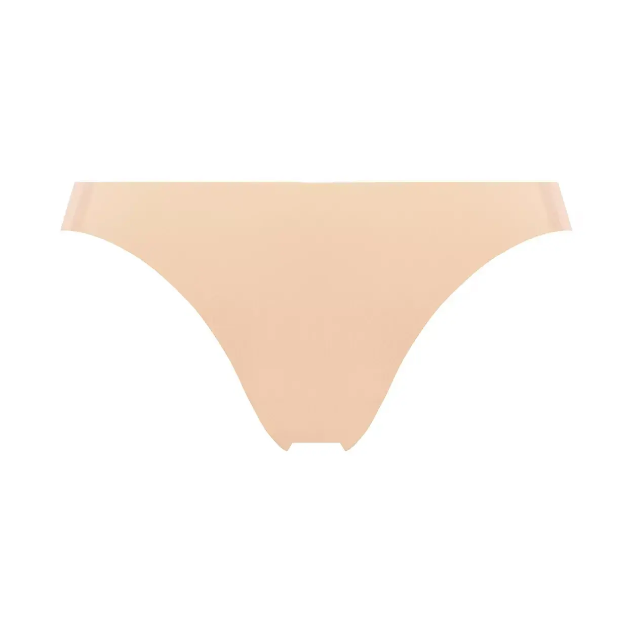 身生地は吸水速乾機能があり、ふんわり柔らかです。接着技術を使用した無縫製のショーツ。生地端が切りっぱなしで、マチシームもないのでパンツスタイルにぴったりです。はきこみ丈は浅めで、ローライズのボトムにも対応できるヒップハンガータイプのTバックです。