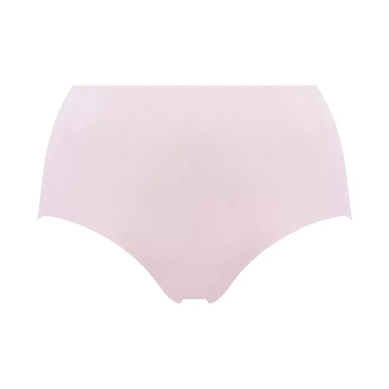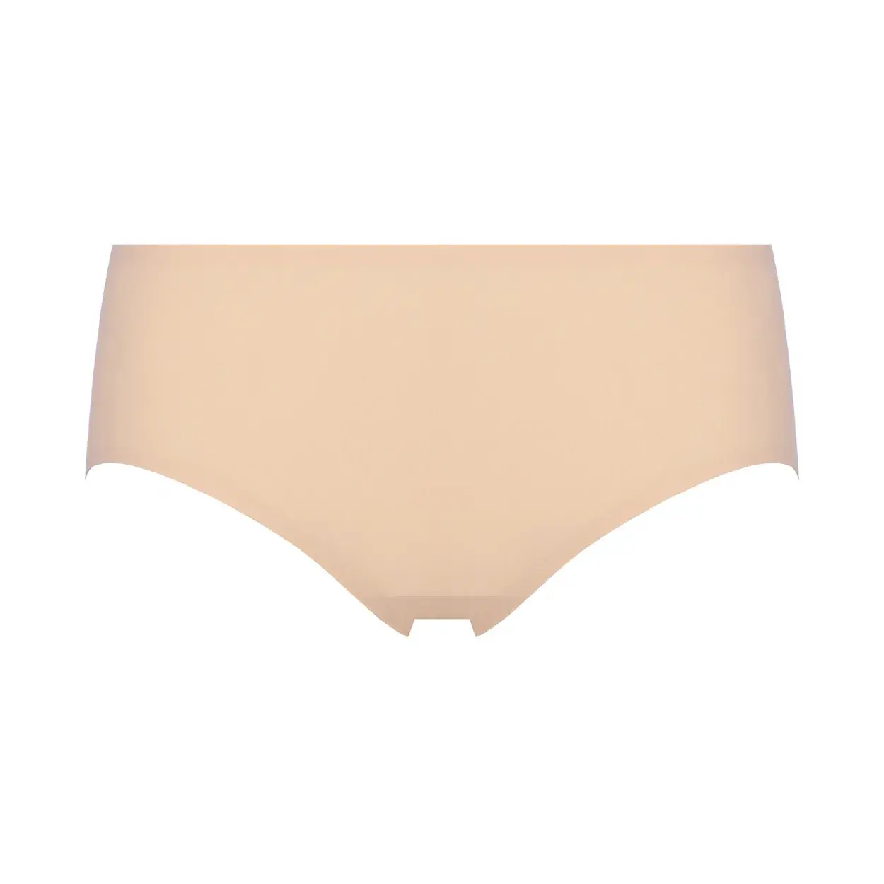 身生地は吸水速乾機能があり、ふんわり柔らかです。接着技術を使用した無縫製のショーツ。生地端が切りっぱなしで、マチシームもないのでパンツスタイルにぴったりです。はきこみ丈は深めです。