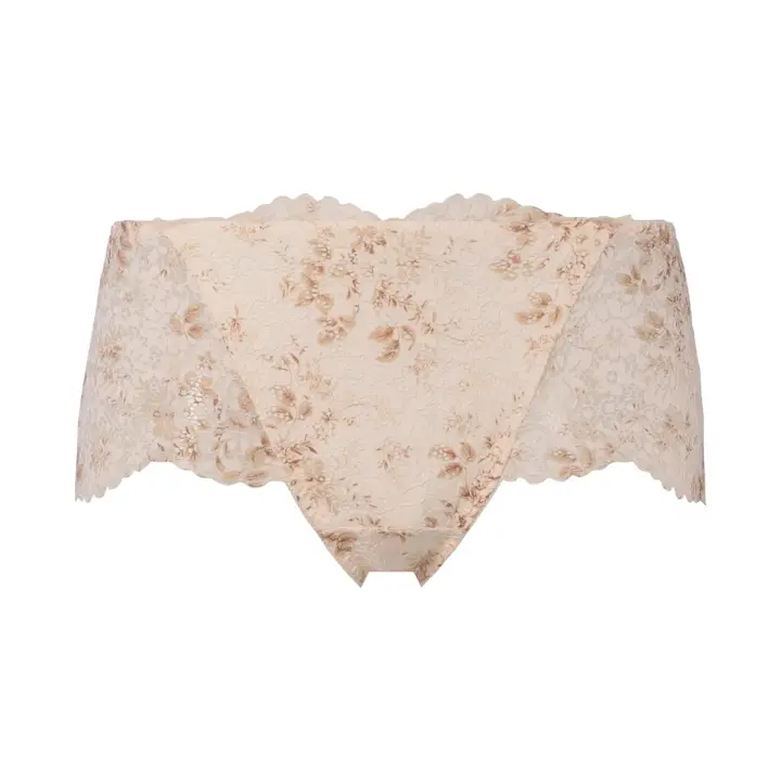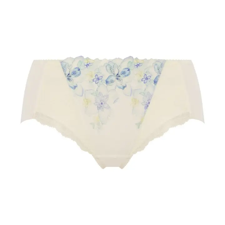 ロマンチックなプリントエンブレースをフロントにあしらい、脚口にストレッチレースを使用したプレミアム感あふれる華やかなデザインです。伸縮性のあるソフトな風合いの身生地を使用しているので柔らかい肌ざわりです。